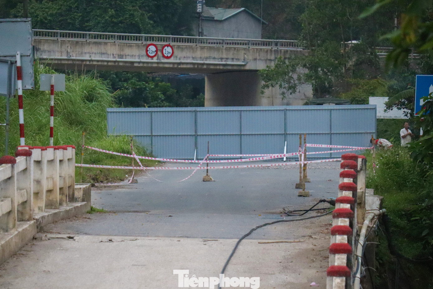 Để đảm bảo an toàn cho người dân, lực lượng chức năng đã dựng rào chắn, giăng dây cấm người dân đến gần khu vực cầu Ngòi Móng.