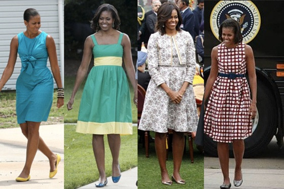 Bà Michelle yêu thích những chiếc đầm dài đến gối, tông màu sáng trẻ trung.