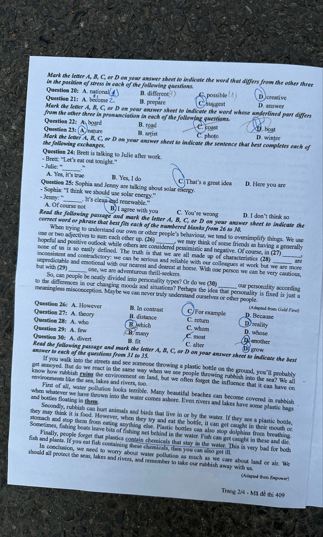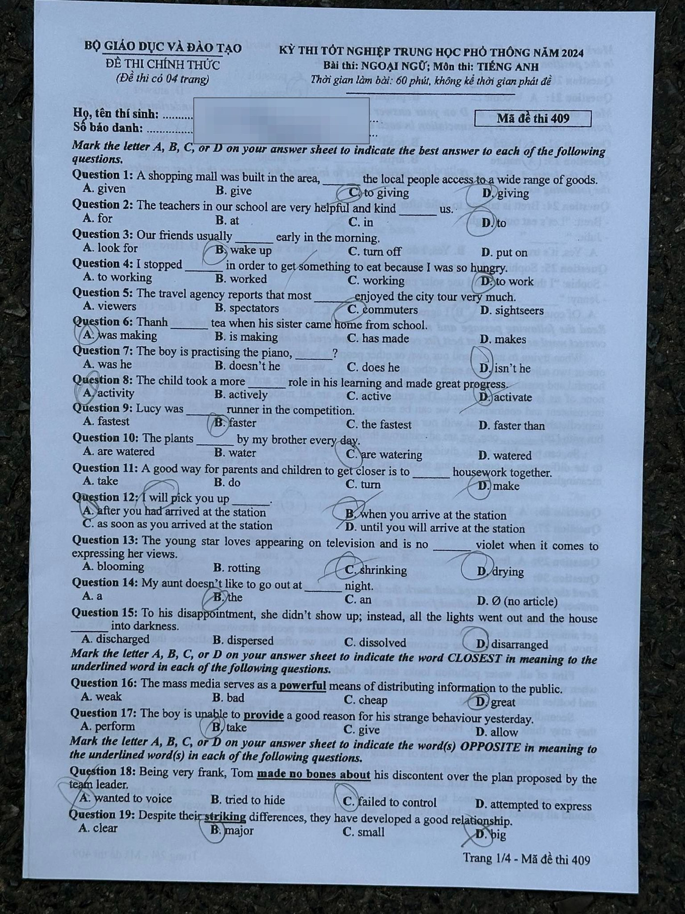 | Mã đề | 408 | ||||||||||||