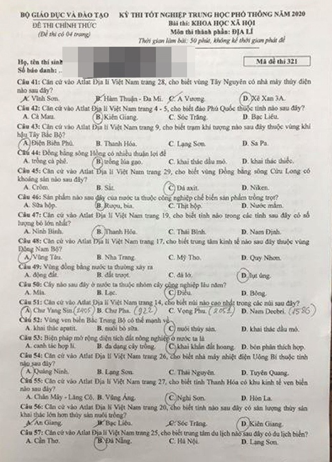 | 41. B | 42. A | 43. B | 44. D | 45. D | 46. A | 47. A | 48. D | 49. A | 50. C |