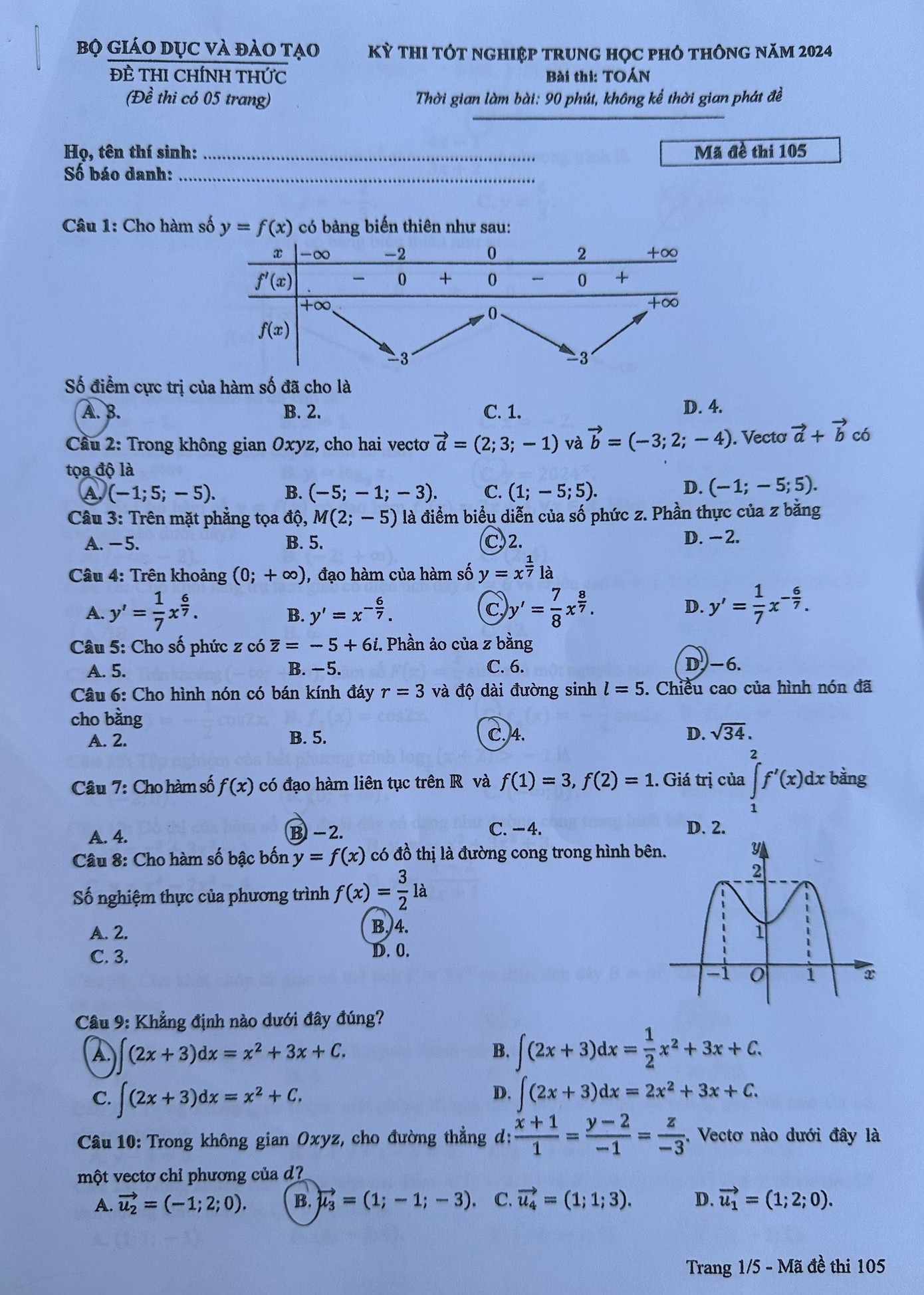 | Đề thi Toán tốt nghiệp THPT năm 2024 |
