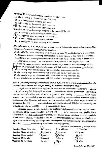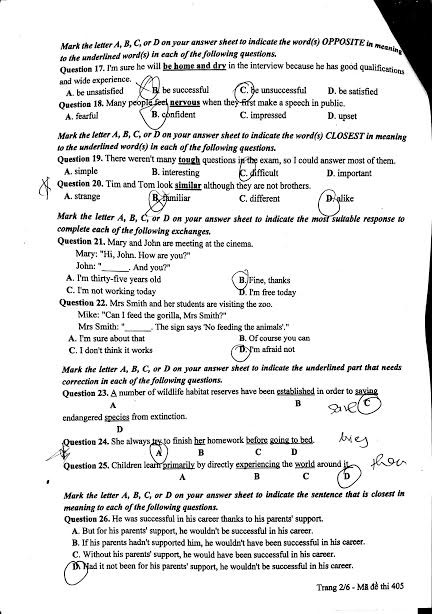 Nhận định chung: Năm 2017 là năm có nhiều sự biến đổi của kì thi THPT quốc gia nói chung và môn thi Tiếng Anh nói riêng. Theo đó, bài thi môn Tiếng Anh sẽ chỉ còn 50 câu với thời gian làm bài 60 phút (khác với năm ngoái là 90 phút/70 câu). Đồng thời, phần thi viết luận đã không còn xuất hiện ở bài thi Tiếng Anh năm 2017.