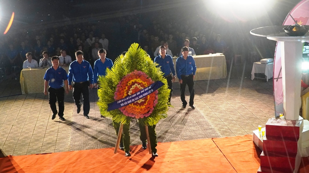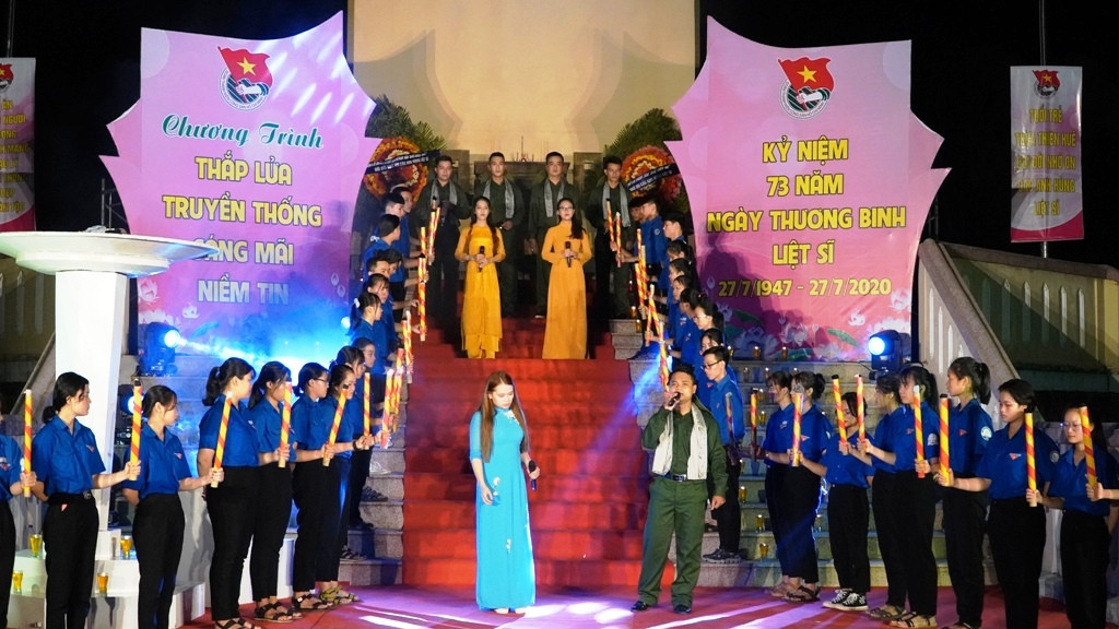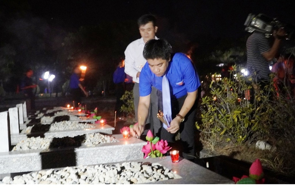 Trong đêm tri ân, ngay khi kết thúc các tiết mục văn nghệ ca ngợi Đảng, Bác Hồ, hát tri ân những người ngã xuống vì Tổ quốc…, các đại biểu và hàng trăm đoàn viên thanh niên đã tiến hành các hoạt động dâng hương, dâng hoa trước tượng đài các anh hùng liệt sĩ. Hàng trăm cây nến ấm áp đã được thắp lên trên những ngôi mộ của các anh hùng liệt sĩ.