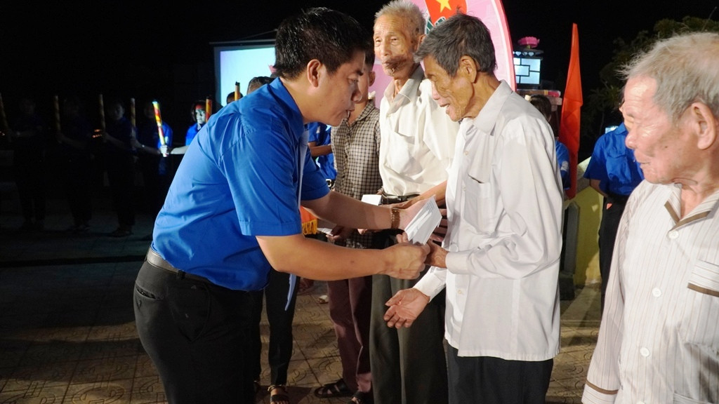 Cũng trong đêm thắp nến tri ân, Tỉnh Đoàn Thừa Thiên Huế đã trao 10 suất quà cho các gia đình chính sách, có công với cách mạng của huyện Phú Vang. Đây là địa bàn có rất nhiều anh hùng liệt sĩ đã ngã xuống vì sự nghiệp bảo vệ Tổ quốc, thống nhất đất nước.