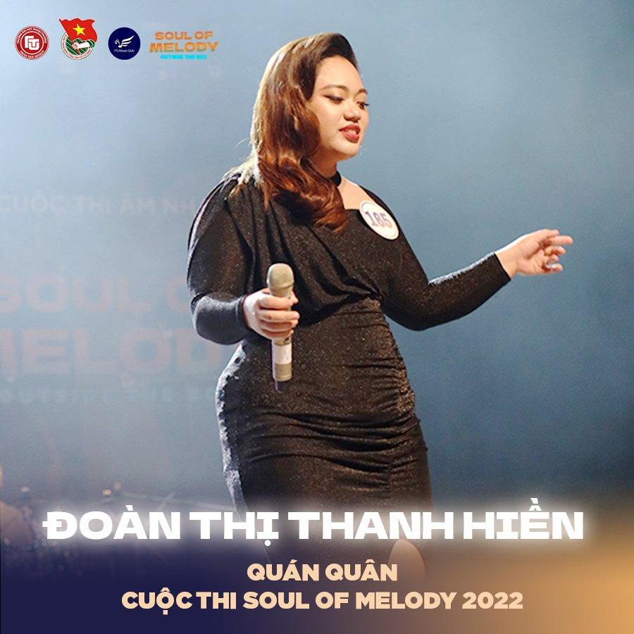 Trải qua những phần thi 'ngang tài ngang sức', sau những vòng thi vô cùng gay cấn, ngôi vị quán quân của cuộc thi âm nhạc Soul of Melody 2022 đã chính thức gọi tên Đoàn Thị Thanh Hiền - Trường Đại học Kinh tế Quốc dân.