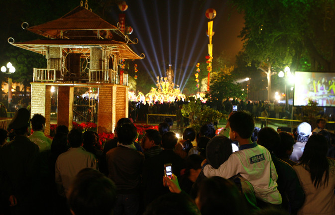 Hàng ngàn người đổ đến Hồ Gươm để ngắm lễ hội hoa nhưng chỉ được đứng nhìn từ xa.