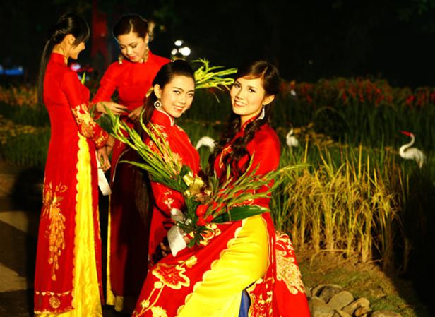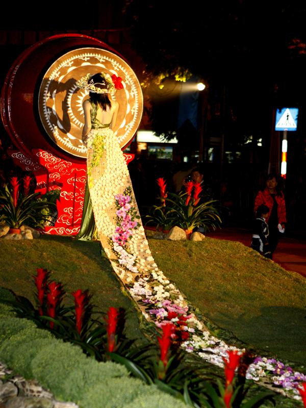 Chiếc áo dài bằng hoa dài nhất Việt Nam, chiều dài 10m kết từ 1.000 bông hoa.