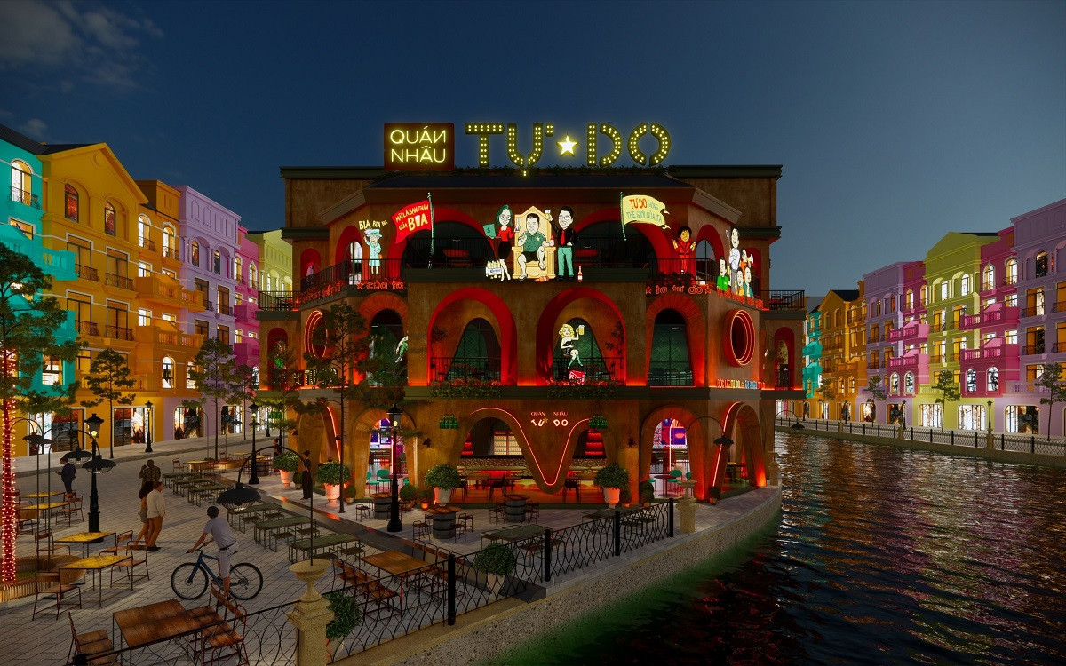 Toạ độ check in “sang chảnh” này còn được nối dài với hàng trăm cửa hàng rực rỡ màu sắc nằm dọc theo con sông góp phần tái hiện nên khung cảnh nước Ý mộng mơ. Ngoài ra, không thể không nhắc đến công trình kiến trúc như cầu Đông Tây ấn tượng kết nối phân khu The Venice với khu K-Town “chuẩn Hàn" cùng hàng trăm artwork biểu tượng từ Á sang Âu khác như phố cổ Hàn Quốc, thỏ Cony, gấu Brown, tháp đồng hồ, đài phun nước Amore, quảng trường Grande đã gần như hoàn thiện, chờ đón ngày mở cửa chính thức.