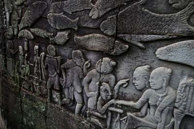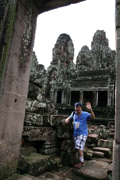 Angkor Thom, trung tâm là khu đền tháp Bayon, mỗi tòa tháp đều được điêu khắc 4 mặt người nhìn ra 4 phía. 54 toà tháp cổ kính với 216 gương mặt với những nụ cười bí ẩn.