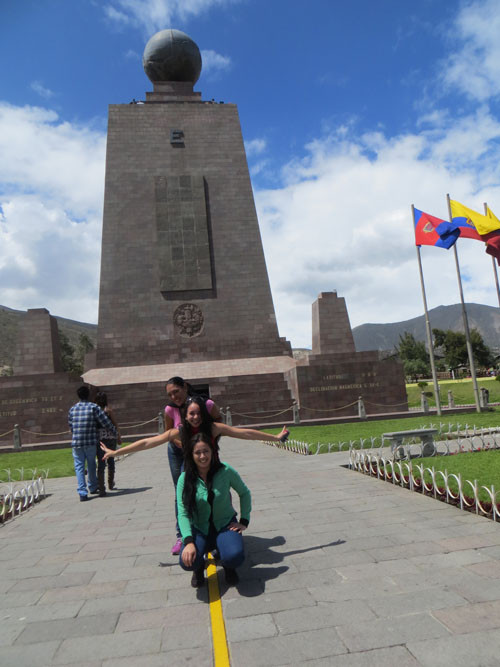 Có một đường ranh giới sơn màu vàng cho phép người ta đứng một cách vênh vang như vậy tại địa điểm cách trung tâm Quito 24 km mà vào năm 1736, một nhóm các nhà nghiên cứu thuộc Viện Hàn lâm khoa học Pháp đã tiến hành đo đạc và xác định đó là nơi đường xích đạo đi qua.