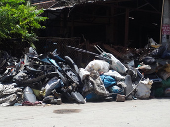 | Những xác xe được chất đống lãn ra cả đường đi Ảnh: Quang Thành. |
