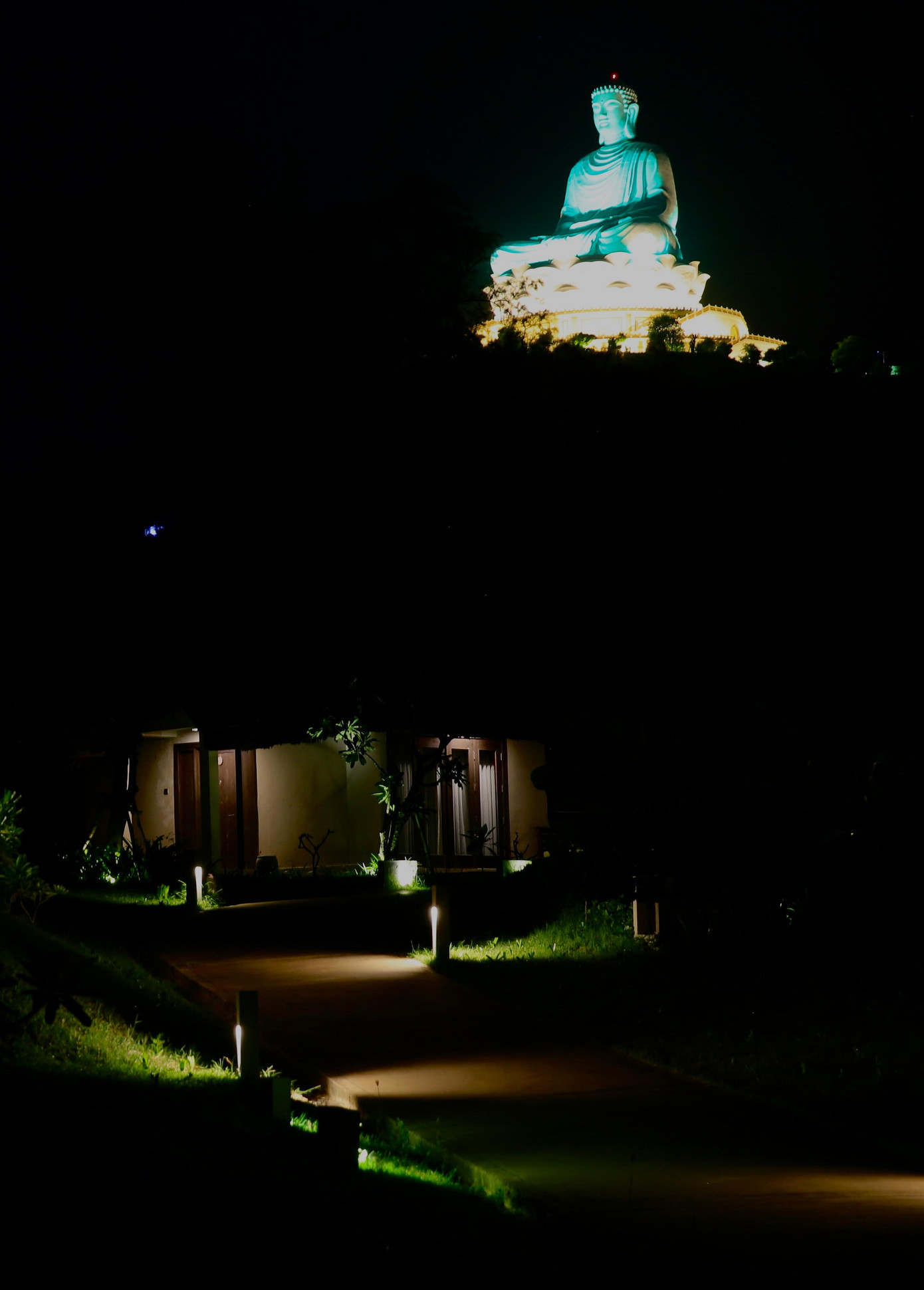| Dưới chân tượng là Trung tâm thuyết pháp Phật giáo và hành lang La Hán, thư viện Phật giáo, bảo tàng Xá Lợi Phật, nơi để du khách đến hành lễ, chiêm bái. |