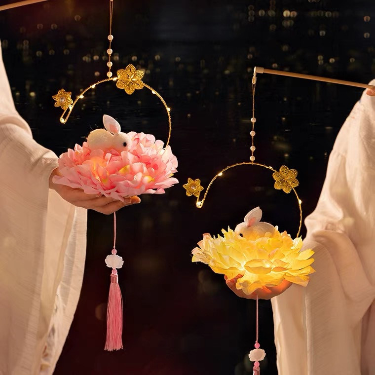 Thị trường lồng đèn DIY còn đa dạng hơn với sự xuất hiện của phiên bản hình tròn. Bạn chỉ cần tạo khung tròn và trang trí tùy thích cho chiếc khung này, gắn que cầm tay là xong. Nếu không có nguyên liệu đa dạng tại nhà thì trên sàn thương mại điện tử cũng đã có một vài cửa hàng bán set làm đèn lồng dạng này. Giá dao động từ 30.000 đến 70.000 đồng.