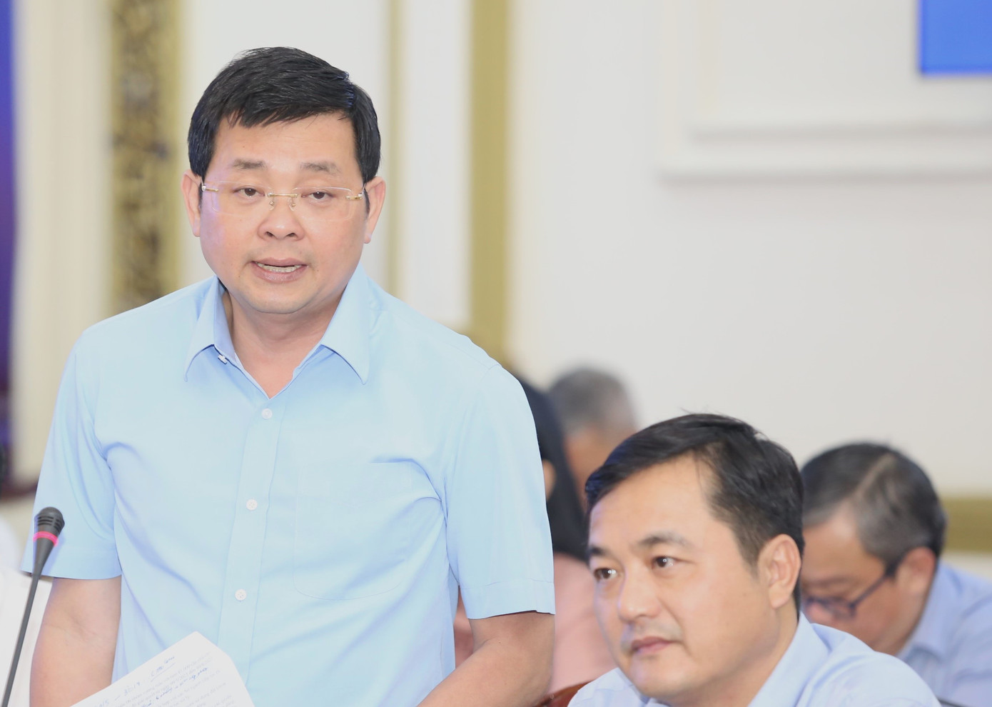 | Giám đốc Sở Du lịch TPHCM trao đổi tại buổi họp. Ảnh: Ngô Tùng. |