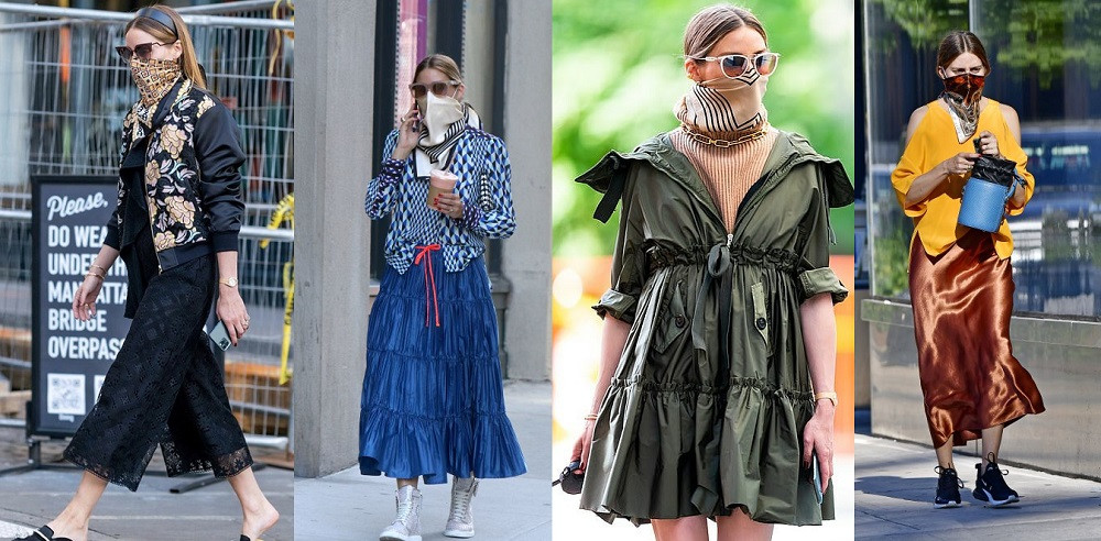 Những chiếc khẩu trang y tế màu xanh lam trông cũ kỹ và nhàm chán sẽ không làm khó được một người có ảnh hưởng về thời trang như Olivia Palermo.
