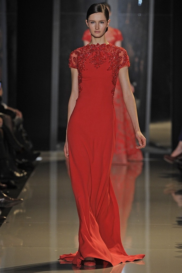 Elie Saab vẫn luôn trung thành với những gam màu pastel, thêm vào đó là gam đỏ ấn tượng. Tất cả tạo nên một “bản nhạc” hoàn hảo, lúc trầm lúc bổng.