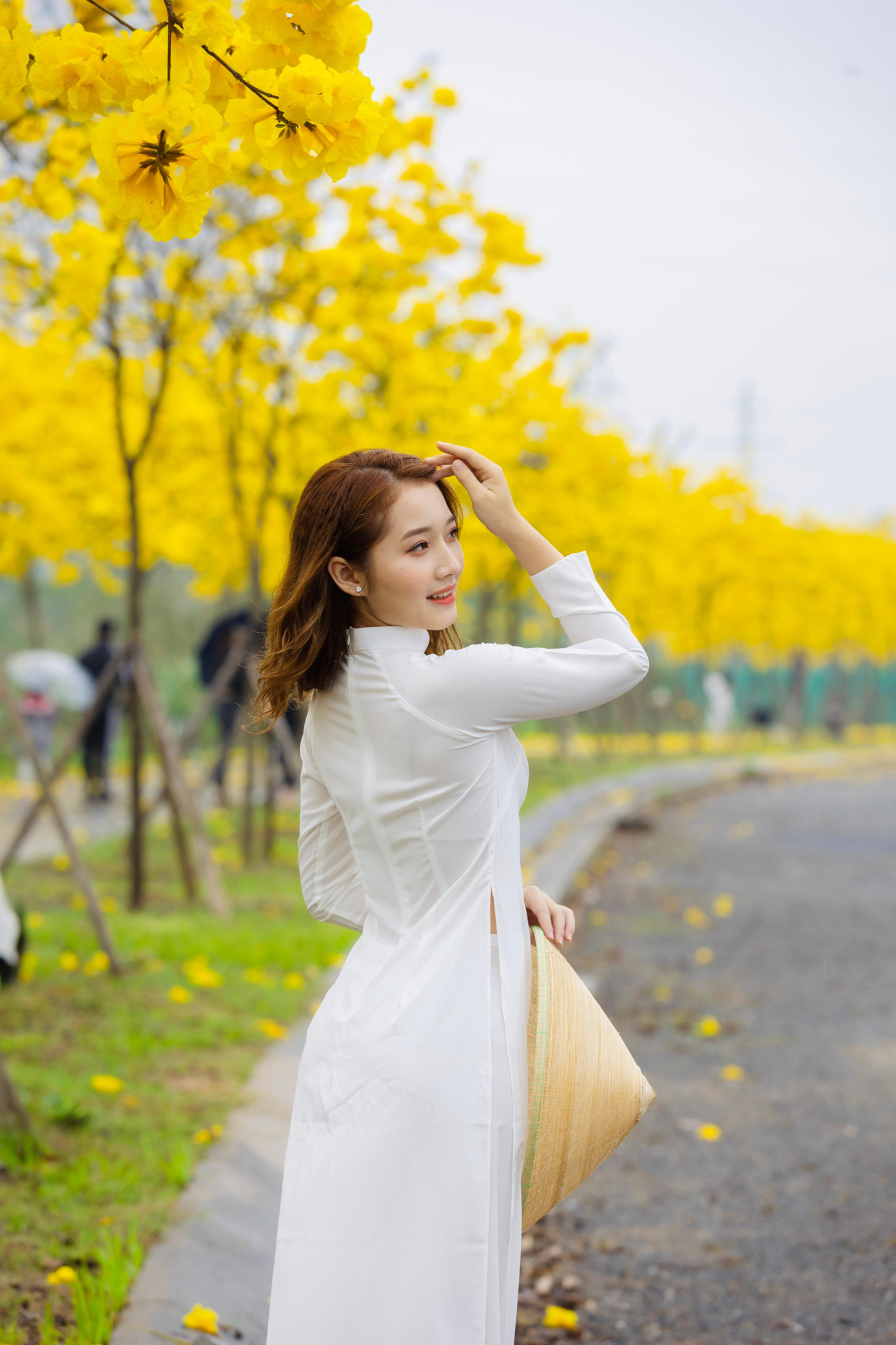 | Hiện tuyến đường có hai dãy hoa phong linh vàng và một dãy hoa gạo ở giữa đang vào thời điểm bung nở khoe sắc đẹp nhất. |