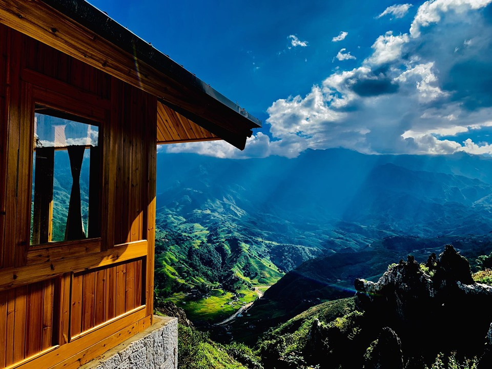 Ngôi nhà gỗ được thiết kế rất đơn giản và tinh tế, với view ngắm mây trời, đồi núi Sapa hùng vĩ.
