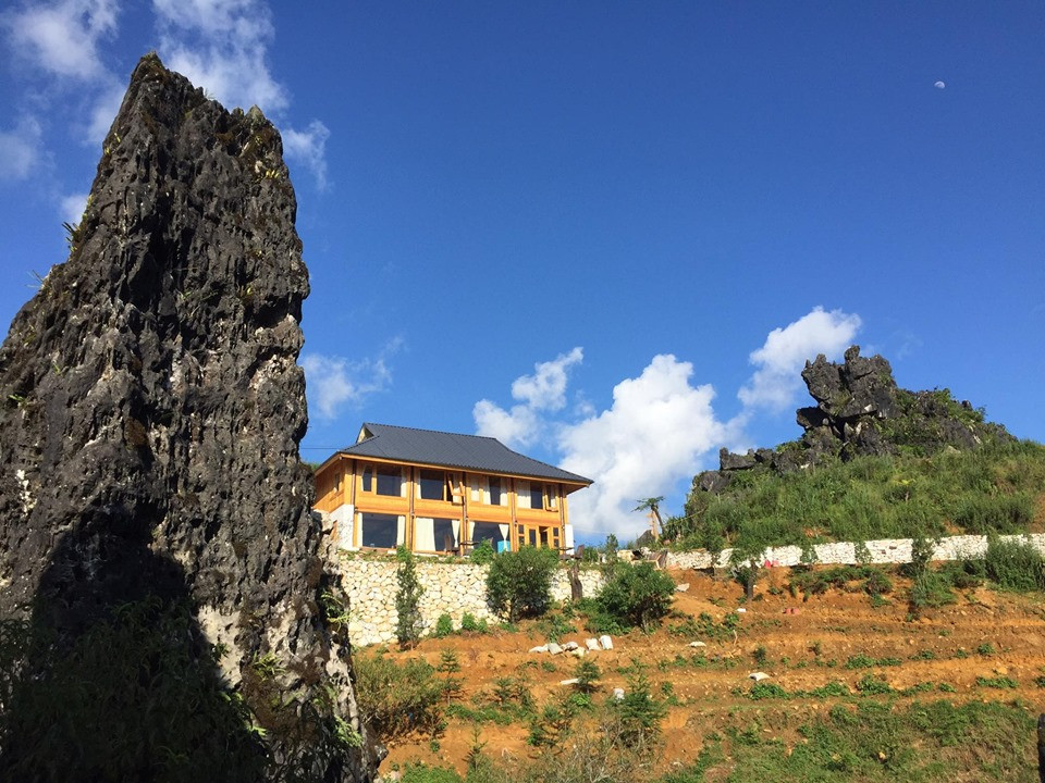 Theo anh Tiến, do rất thích nhà gỗ và cách người bản địa nơi đây xây tường đá nên quyết định đi theo hướng kiến trúc với 2 chất liệu chủ đạo là gỗ và đá.