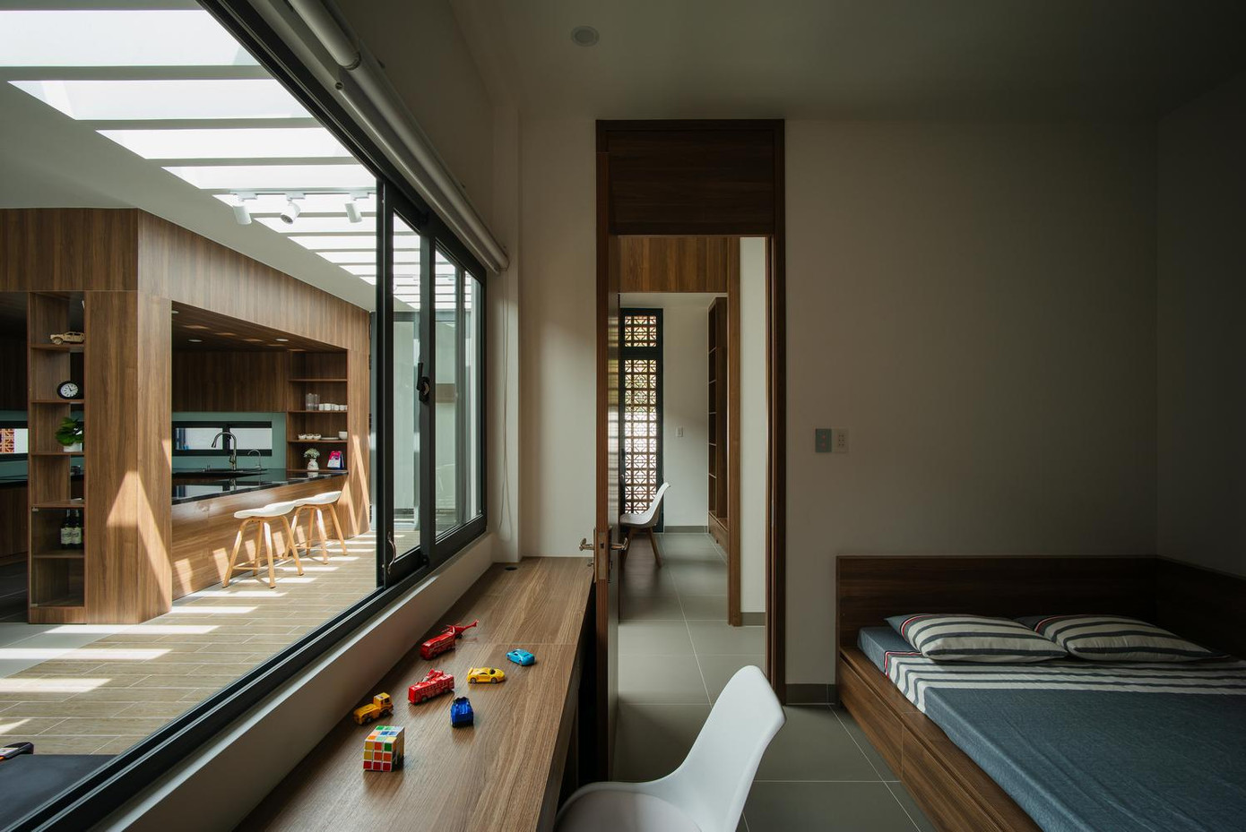 | Đồng thời, gia chủ hi vọng ngôi nhà còn là nơi các thành viên có thể nhìn thấy cây xanh, ánh nắng, đám mây và cảm nhận làn gió mát mỗi ngày. Họ muốn tận dụng thời gian rảnh vào buổi tối để trò chuyện, học và chơi cùng con. Vì vậy, khi lựa chọn giải pháp bố trí không gian, tính kết nối được kiến trúc sư (KTS) ưu tiên hàng đầu. |
