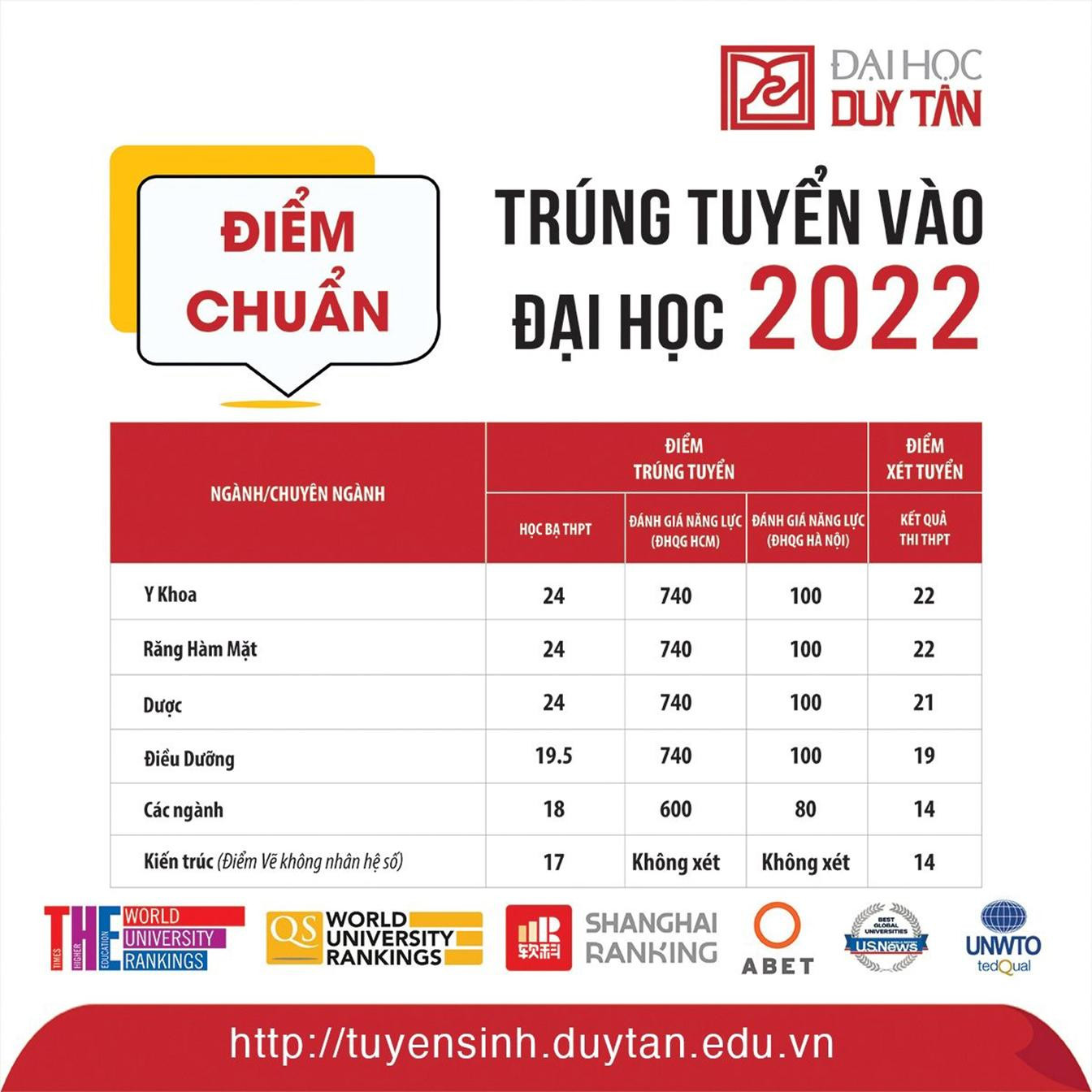- Thí sinh xác nhận nhập học trực tuyến đợt 1 qua cổng thông tin của Bộ GD&ĐT từ ngày 15/9 và đến nhập học trực tiếp tại Trường Đại học Duy Tân, số 254 Nguyễn Văn Linh, Quận Thanh Khê, Tp. Đà Nẵng từ 15/9 đến 30/9/2022.