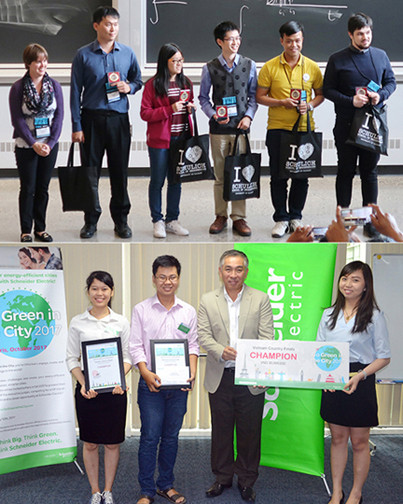 Sinh viên Lê Đình Nhật Khánh (áo vàng) của ĐH Duy Tân cùng các sinh viên quốc tế giành chức Vô địch Cuộc thi CDIO Academy 2017 tại Canada (ảnh trên) và sinh viên Duy Tân Vô địch Quốc gia Cuộc thi “Go Green in the City” 2017 (ảnh dưới)