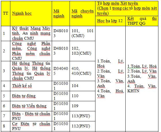 - Học bổng TOÀN PHẦN (100% học phí toàn khóa học) cho những thí sinh đăng ký vào học bất kỳ chuyên ngành nào của các chương trình Tiên tiến & Quốc tế CMU, CSU, PNU có tổng điểm xét tuyển 3 môn từ Kỳ thi THPT Quốc gia đạt từ 20 điểm trở lên.