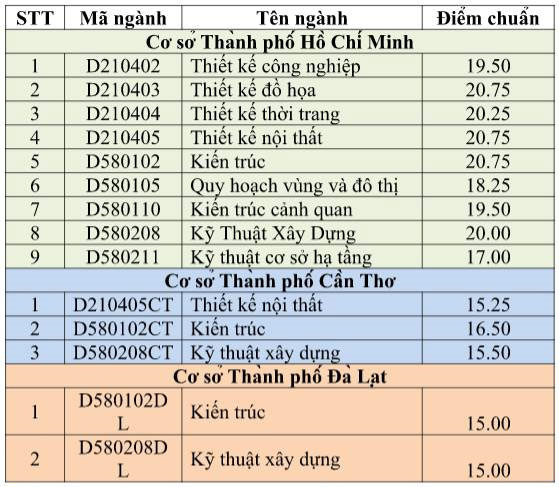 Trong đó, ngành Thiết kế đồ họa, Thiết kế Nội thất và Kiến trúc tại TP HCM có điểm trúng tuyển cao nhất là 20,75.