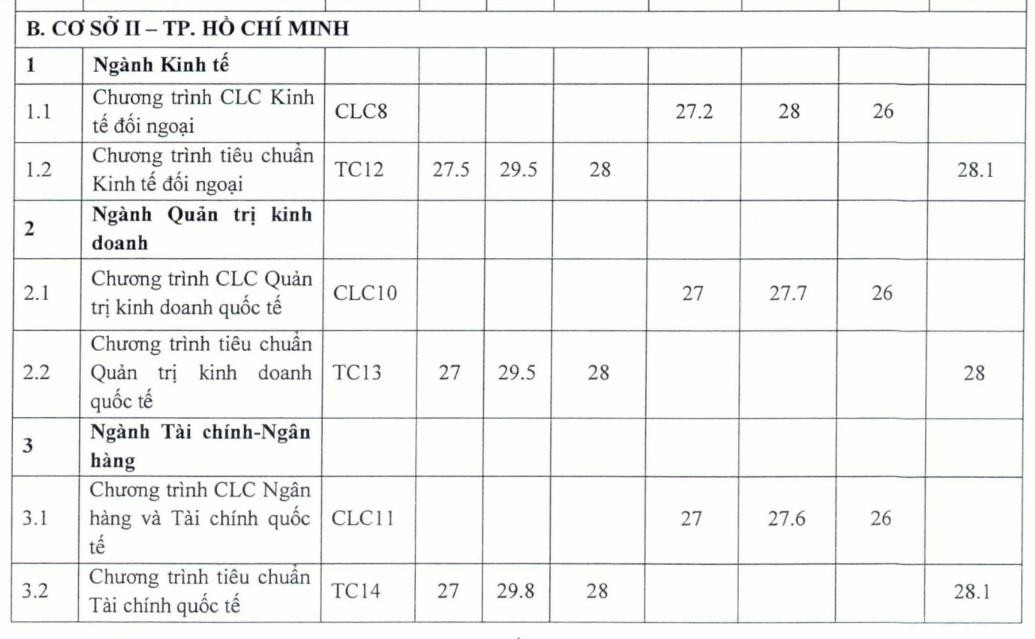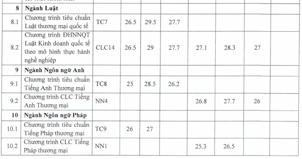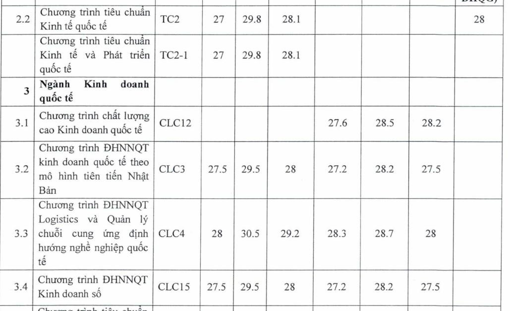 TPO - Trường Đại học Ngoại thương công bố điểm trúng tuyển đối với 3 phương thức xét tuyển không sử dụng kết quả thi tốt nghiệp THPT. Trong đó, điểm chuẩn cao nhất là 30,5/30 điểm.