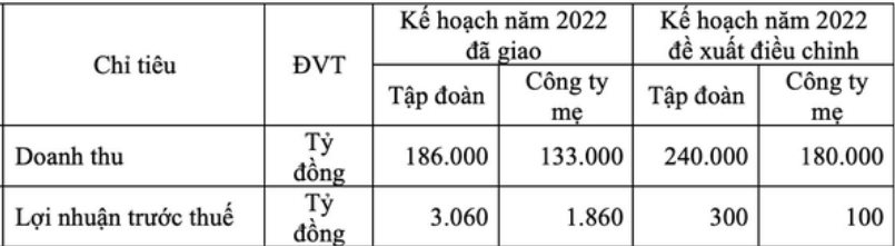 Đối với nội dung “Điều chỉnh chỉ tiêu kế hoạch sản xuất kinh doanh năm 2022”, nguyên nhân xuất phát từ tác động của rất nhiều yếu tố liên quan đến biến động bất thường, dị biệt của giá dầu và nguồn cung năng lượng thế giới, cơ chế vận hành liên quan đến cấu thành giá cơ sở và sự cố từ NMLD Nghi Sơn. Do các yếu tố tác động là bất khả kháng nằm ngoài khả năng dự báo khi xây dựng kế hoạch của Tập đoàn nên việc điều chỉnh là cần thiết và phù hợp quy định; cụ thể tại bảng sau: