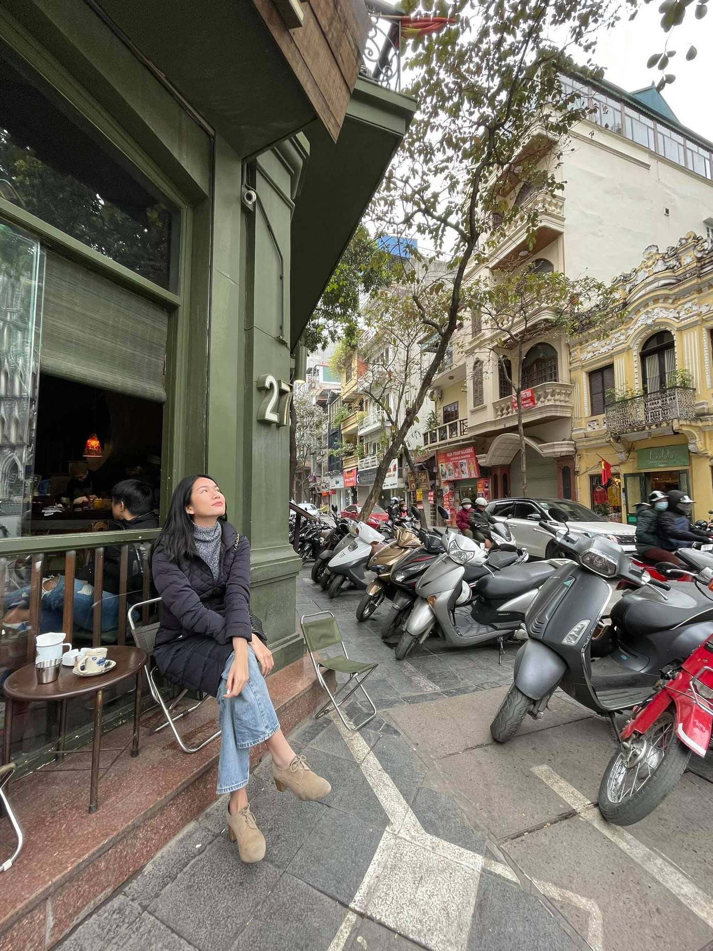 Những phút giây thư giãn của Á hậu Phương Anh. Phương Anh chia sẻ, cô thích cái lạnh tê tái của Hà Nội, được ngồi bên vỉa hè cùng cốc cafe nóng.