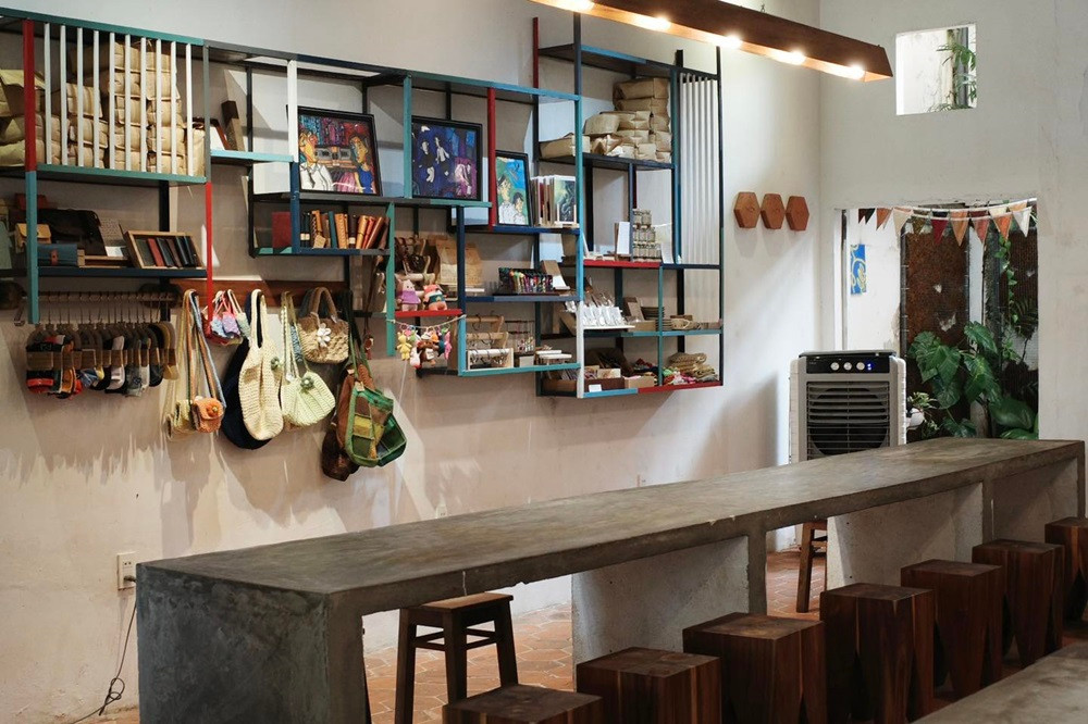 Noon còn có một góc tường dành cho sạp hàng nhỏ với mấy món đồ rất “quê”, rất đậm đà chất đất Phú được anh chị chủ lựa chọn một cách kỹ lưỡng như túi len, móc khoá, khuy cài, sổ da,... Ngoài ra, quán còn hay tổ chức phiên chợ đồ handmade hay workshop làm vòng đính kết từ vỏ sò, con ốc, trang sức thủ công.