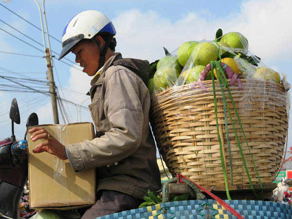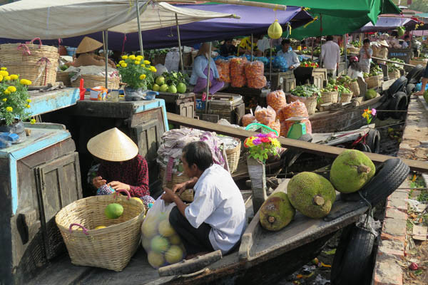 Chị Nguyễn Thị Phượng, chủ ghe ở tỉnh Hậu Giang, cho biết “Trái cây vùng nước ngọt Hậu Giang, Cần Thơ, Tiền Giang, Bến Tre… đổ về chợ nổi rất nhiều. Chúng tôi được phép cập bến chợ để bán nhưng phải bán sỉ, không được bán lẻ”.