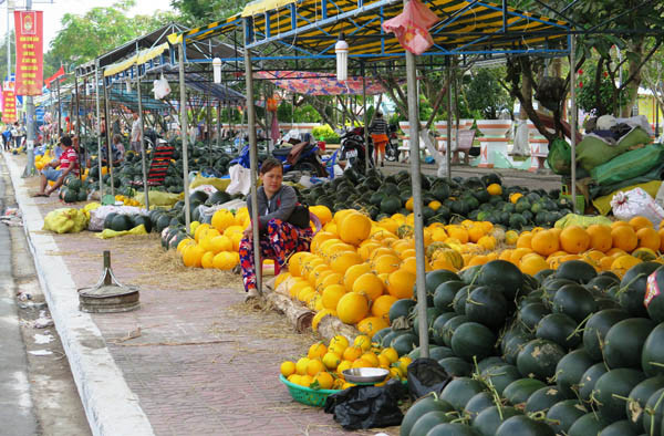 Hàng trăm ghe thương hồ chở trái cây cặp bến bán tết.