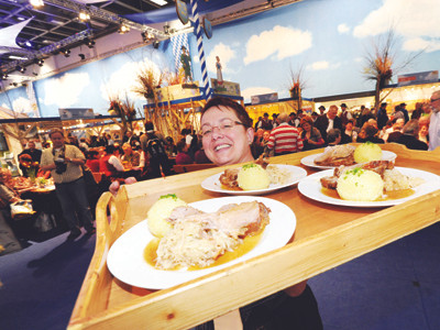 Dòng người cứ nườm nượp như trẩy hội, không khí trong hội chợ cũng đậm đặc chất lễ hội - một cuộc trình diễn ẩm thực lớn nhất hành tinh. Trước những gian hàng lớn của các nước và các bang của Đức đều có biểu diễn văn nghệ, múa hát truyền thống rất sôi động.