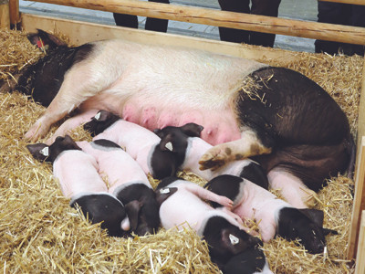 Xen kẽ giữa các gian hàng ở khu vực của Hà Lan, Pháp hay Đức còn có khá nhiều quầy ăn uống, có quầy vừa triển lãm vừa bán đồ ăn uống tại chỗ vô cùng đắt khách. Đối với một người Việt như tôi, những tảng thịt lợn xông khói xù xì to như chiếc mũ cối treo la liệt trên tường kia là điều hết sức lạ lẫm.