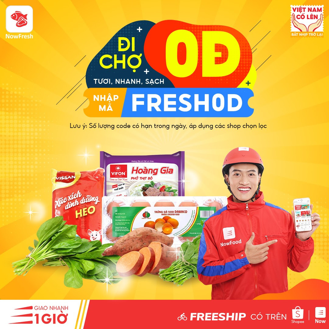Đặc biệt từ 19/5 này, NowFresh có chương trình ĐI CHỢ 0Đ khi đặt mua thực phẩm qua NowFresh trên ứng dụng Shopee. Khách hàng chỉ cần nhập code FRESH0D ở bước thanh toán là được trừ trực tiếp 20k trên một món hàng.