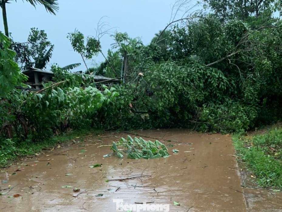 | Cây đổ, gãy cành do dông lốc khiến nhiều ngôi nhà và các công trình khác bị hư hại nặng nề. |