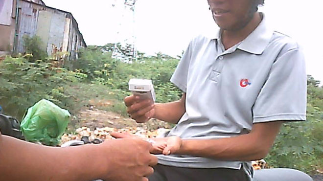| Đầu nậu ma túy Hùng giao ma túy cho một con nghiện. Ảnh: A.T. (trích từ video clip). (Tuổi Trẻ). |