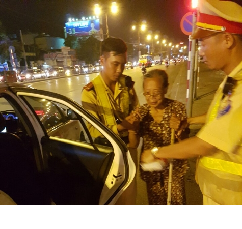 Vào hồi 19h30 phút tối 4/6, tổ công tác do Trung úy Phạm Văn Chính, Đội CSGT số 14 chỉ huy trong quá trình làm nhiệm vụ đảm bảo ATGT trên tuyến đường Giải Phóng, Nguyễn Hữu Thọ bỗng phát hiện một bà cụ chống gậy lần hồi từng bước trên đường.