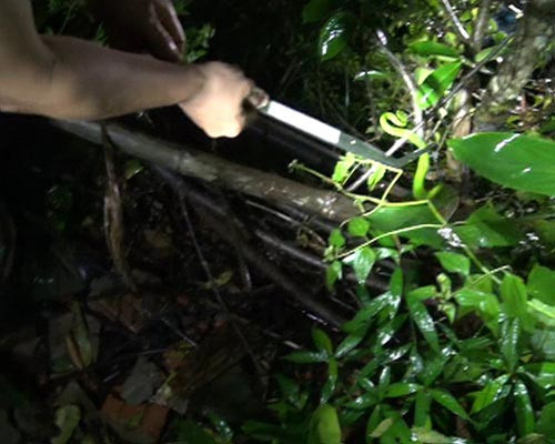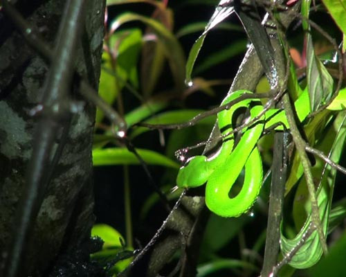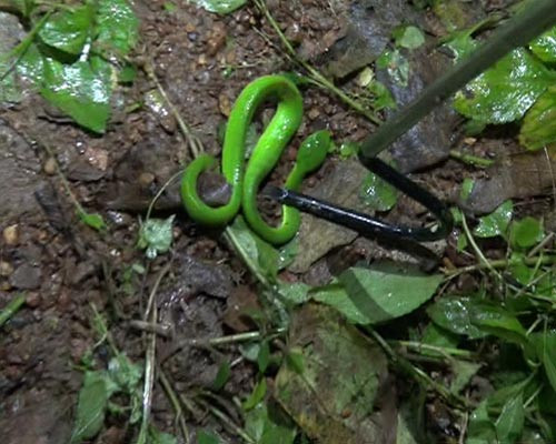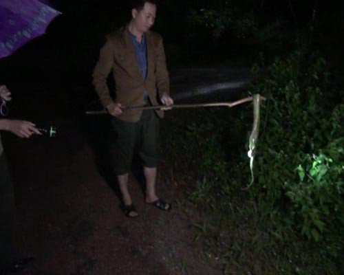 Đoàn kiểm tra đã bắt được một con rắn lục. Ban đêm rắn lục đuôi đỏ thường sống trong các bụi rậm và thường xuyên cắn người khi đụng trúng.