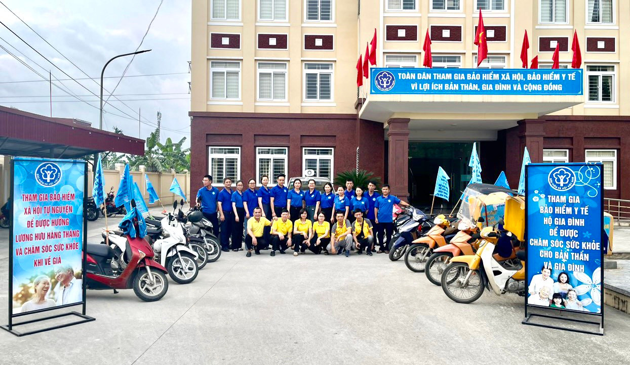 Trong ngày ra quân cơ quan BHXH và Bưu điện huyện đã tuyên truyền và phát triển được 4 người tham gia BHXH tự nguyện và 15 người tham gia BHYT.