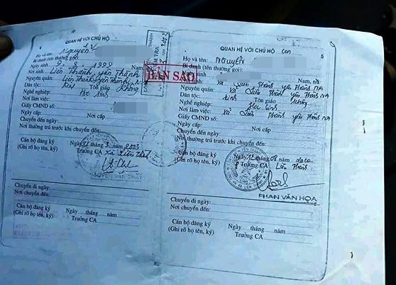 Trong bản sao sổ hộ khẩu có ghi tên một người là Nguyễn Đ.Đ. (SN 1999, nơi sinh xã Liên Thành, huyện Yên Thành, Nghệ An), phán đoán là tên một nạn nhân.
