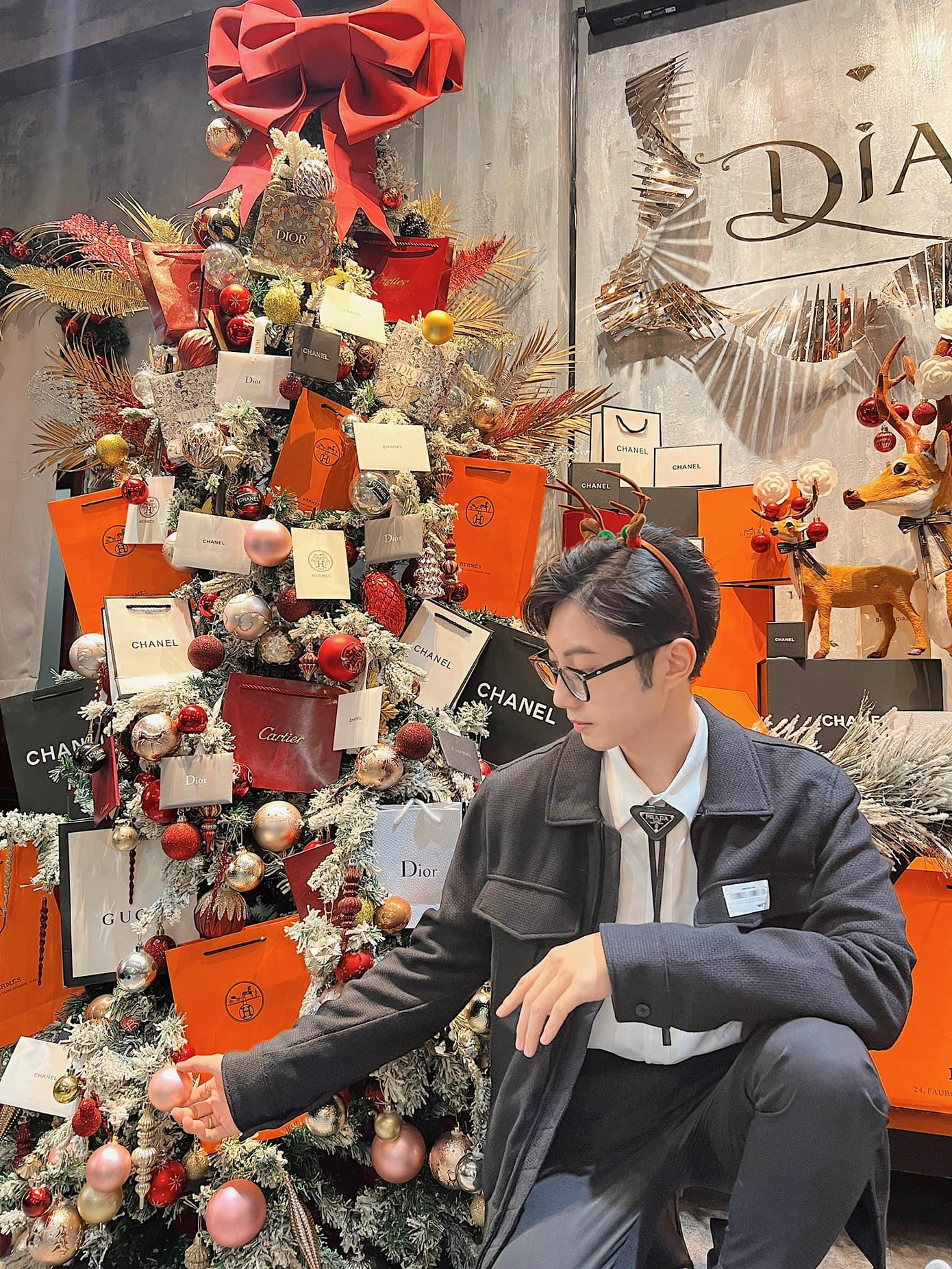 Để bộ ảnh Giáng sinh thêm lạ, bạn có thể ghé qua check-in cùng "cây thông hàng hiệu" tại Diamante (quận Ba Đình). Quán cà phê này gây ấn tượng với cây thông khoác lên mình những chiếc túi đề tên của hàng loạt các thương hiệu thời trang cao cấp.