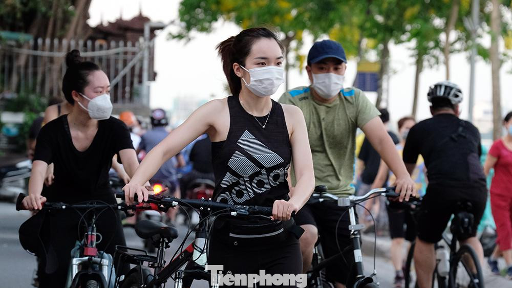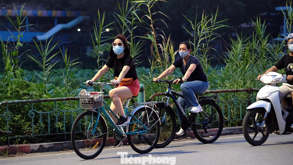 | Tuy nhiên, thời gian từ cuối giờ chiều trở đi, rất nhiều người dân thủ đô đổ ra khu vực đường, đặc biệt là quanh Hồ Tây vô tư đạp xe, tập thể dục và hóng mát. |
