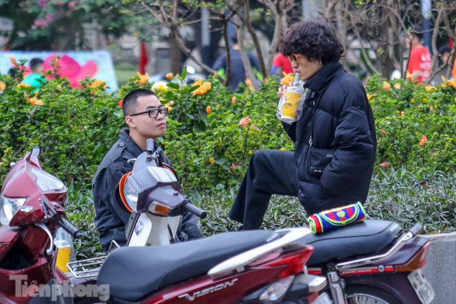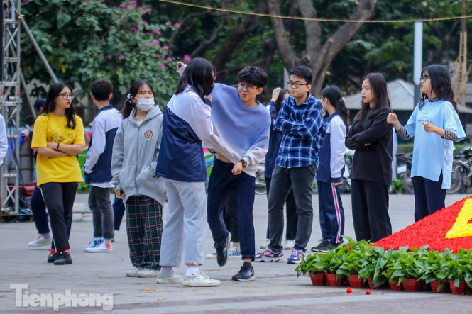 Nhóm các bạn trẻ không đeo khẩu trang khi vui chơi tại vườn hoa Lê- Nin