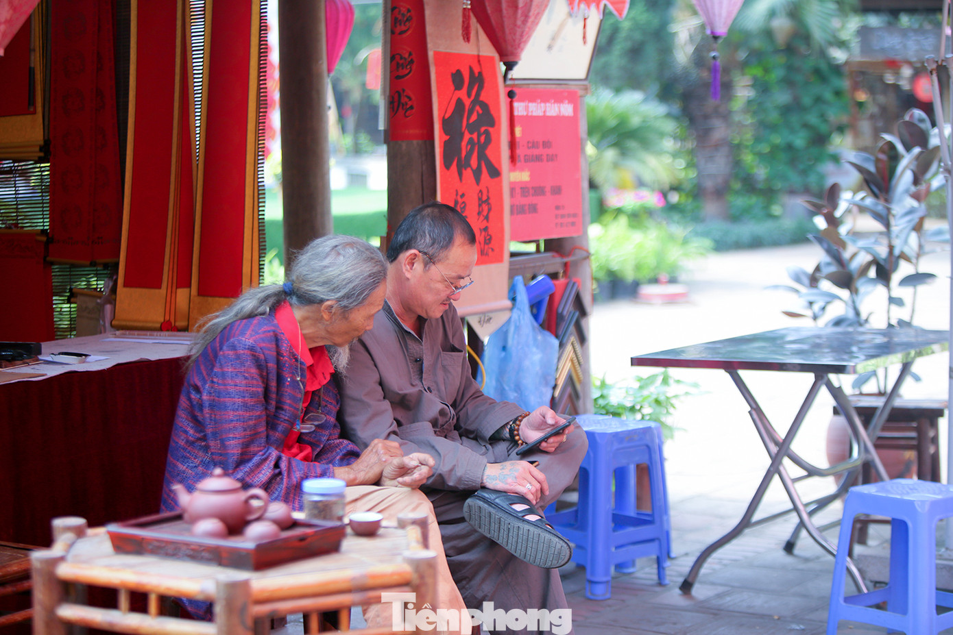 Lác đác chỉ có 1,2 người đến xin chữ trong sáng ngày thứ bảy cuối tuần.
