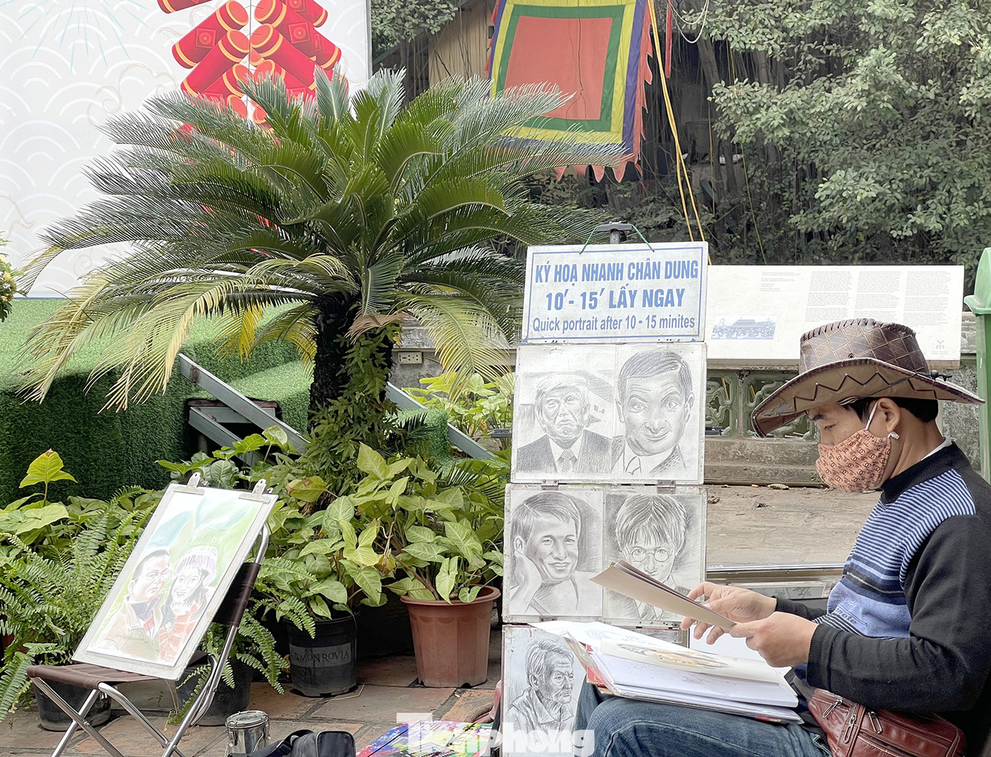 Cả khu vực rộng lớn là thế những cũng chỉ có 1 hoạ sỹ đường phố bày đồ nghề vẽ ký hoạ chân dung nhưng cũng chẳng có khách ghé qua.