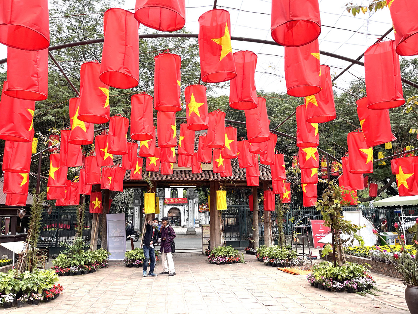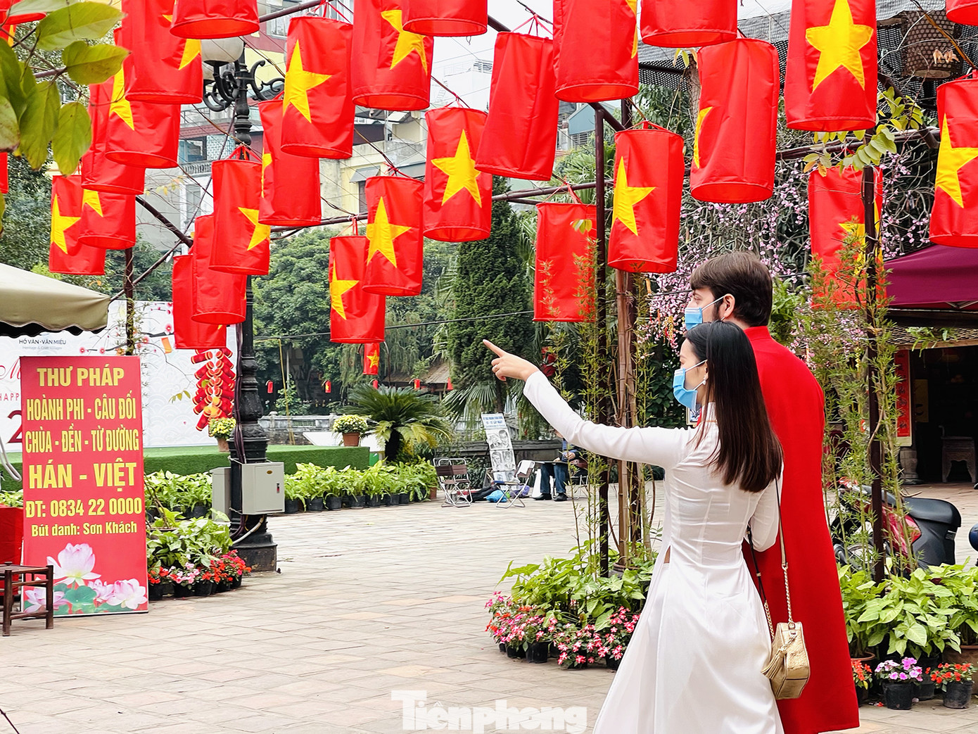 Lác đác chỉ có 1 vài người dân ghé thăm quan xin chữ dù hôm nay là dịp cuối tuần cận Tết nguyên đán.