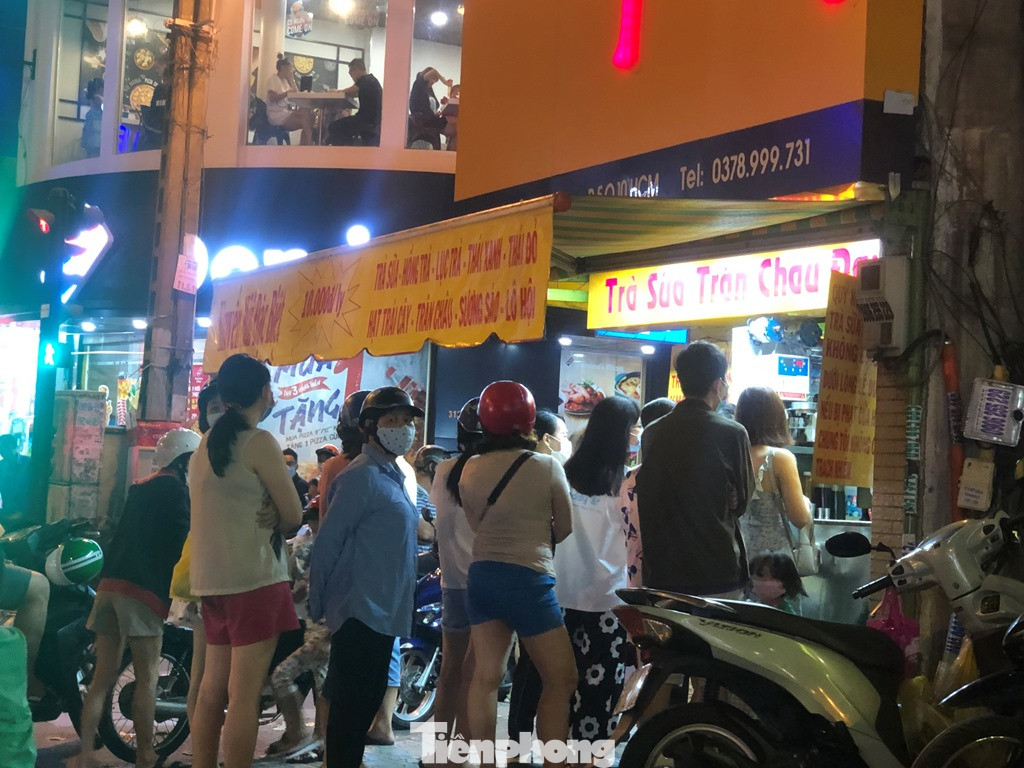 Quán trà sữa Đài Loan trên đường Nguyễn Tri Phương, Q.10 khắp xếp hàng san sát nhau, không chấp hành quy định giãn cách, nguy cơ dịch bệnh cao...